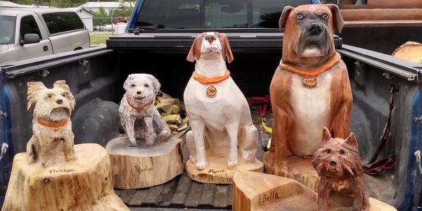 Our dog carvings are a little different as far as price goes. We have set prices that go by the size of the dog. The sizes are small, medium and large dog. In general most people want the dog to look realistic like their family pet Fluffy. We do put a lot of detail work into our dog carvings which you can see in the pictures above.