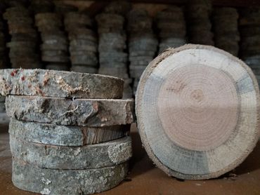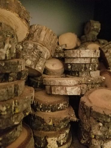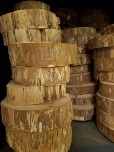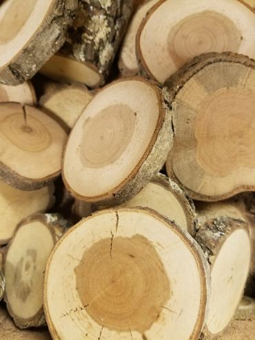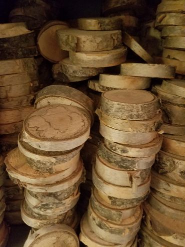 Cutting slices of a log sounds easy,....it's not. We have over 50,000 slices of wood in 16 different species. Sizes from 1 inch to 36 inches in diameter. Call, stop by, or look in our store for options.