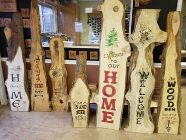 Most of the signs that I make are custom ordered. There's nothing we can't create with wood. Call us to have your ideas brought to life.