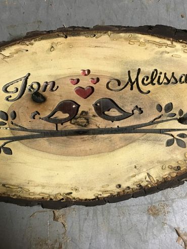 Custom router work on all signs is available. Each sign is created on unique slabs of wood milled right here at our shop. Routers are used to create lettering and simple 2 dimensional images.