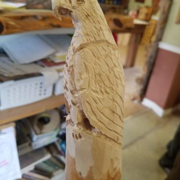 Hiking sticks with a custom carving. Often we carve morel mushrooms and eagle heads but we are happy to carve your ideas onto your next walking stick.